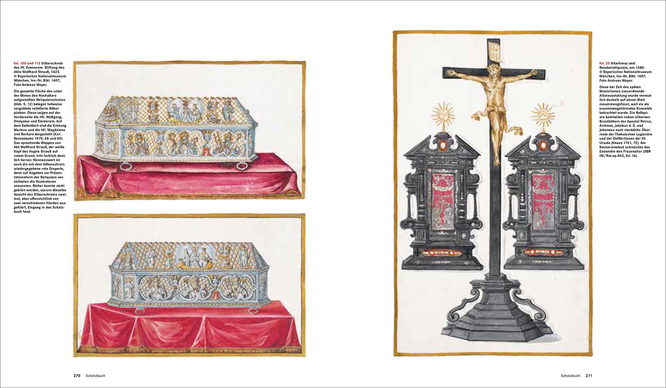 Neben einem der bedeutenden Bestände Süddeutschlands an historischen Textilien und liturgischen Gewändern erschließt der Band eine bislang unbekannte Bildquelle des 18. Jahrhunderts: das Schatzbuch von St. Emmeram. Es ist das seltene Zeugnis eines im Medium der Zeichnung erfassten Kirchenschatzes, der mit dem Alten Reich unterging. Die in dem Band ausgebreitete Textil- und Goldschmiedekunst illustriert die Höhepunkte liturgischer Zeremonien in einem geistlichen Fürstentum vor 1812 und macht eine ganze Epoche fassbar und sichtbar.