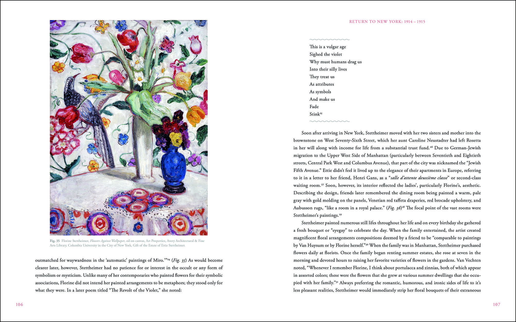 This first full biography confirms Florine Stettheimer as one of the 20th centurys most significant, progressive artists whose work remains highly relevant today. Stettheimer was a feminist and a multi-media artist who painted several sexually explicit, political works examining identity issues documenting New York Citys growth as the center of cultural life, finance, and entertainment between the World Wars.. During her first 40 years in Europe, Florine Stettheimer studied academic painting and was aware of all the earliest modernist styles ahead of most American artists. Returning to New York, she and her sisters led an acclaimed Salon for major avant-garde cultural figures including Marcel Duchamp, the Stieglitz circle, poets, dancers, writers, etc. She showed her innovative paintings in over 46 of the most important museum exhibitions and Salons, wrote poetry, designed unique furniture and gained international fame for her sets and costumes for avant-garde opera.