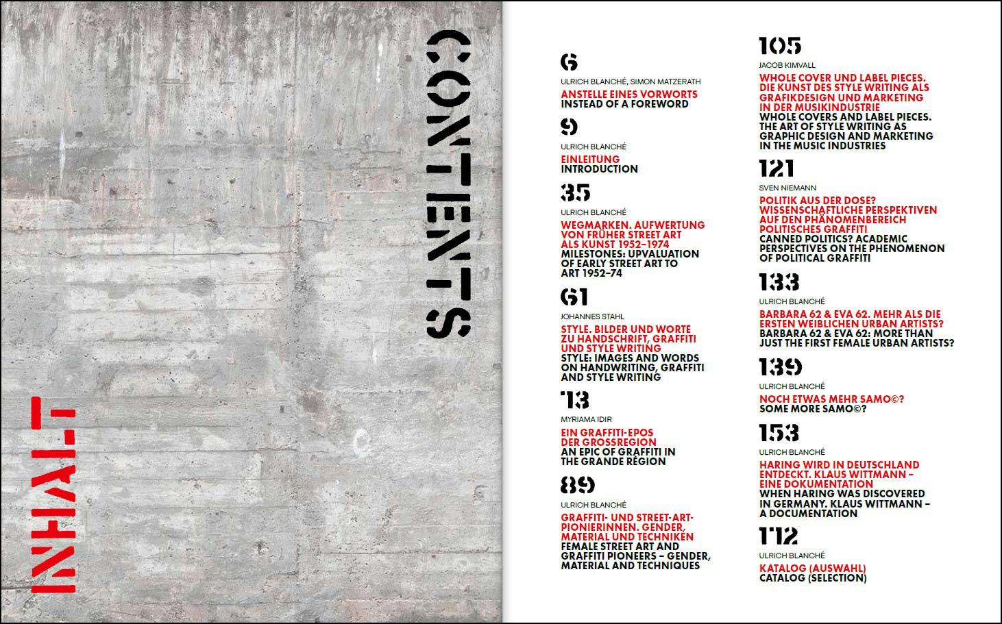 Alex Vallauri | Bando | Banksy | Barbara 62/Eva 62 | Blek le Rat | Brassaï | Martha Cooper | Christo/Jeanne-Claude |George Condo | Daniel Buren | Daze | Harald Naegeli | Ernest-Pignon-Ernest | Jane Bauman | Jérôme Mesnager | Jill Posener | Guerrilla Girls| Jenny Holzer | Keith Haring | Lee Quiñones | Marcus Krips | Richard Hambleton | SAMO© [Jean-Michel Basquiat & Al Diaz] | SONER | Crass /Gee Vaucher | David Wojnarowicz | Walter Dahn | Jerzy Treliński |Gerard Zlotykamien u.a.