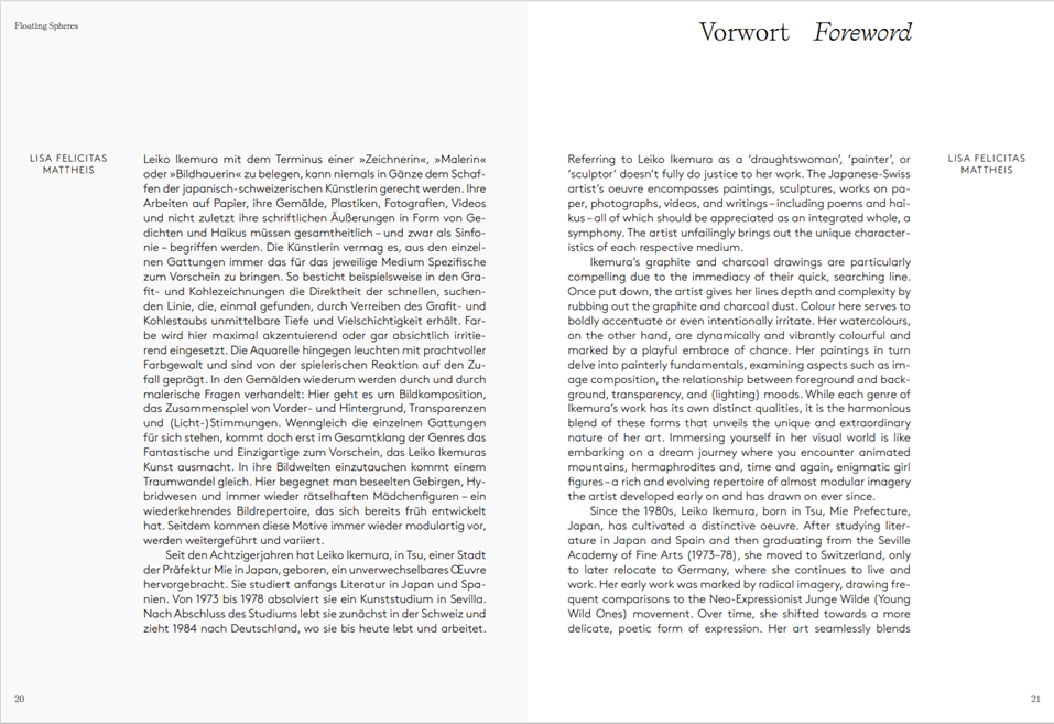 Die international agierende japanisch-schweizerische Künstlerin Leiko Ikemura (*1951) hat seit den achtziger Jahren ein unverwechselbares Œuvre hervorgebracht. In ihrem künstlerischen Kosmos verwebt sie Pflanzen- und Tierdarstellungen, Landschaften und das menschliche Antlitz. Der reich bebilderte Band umfasst ihr gesamtes Œuvre von den 1980er Jahren bis heute mit Grafiken, Gemälden und Skulpturen.